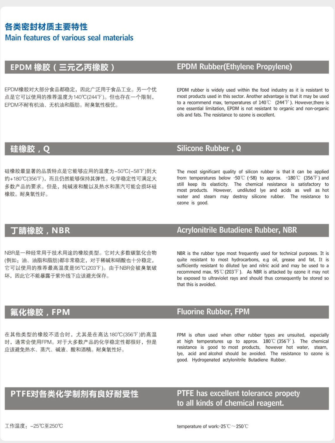各類密封材質主要特性 返回