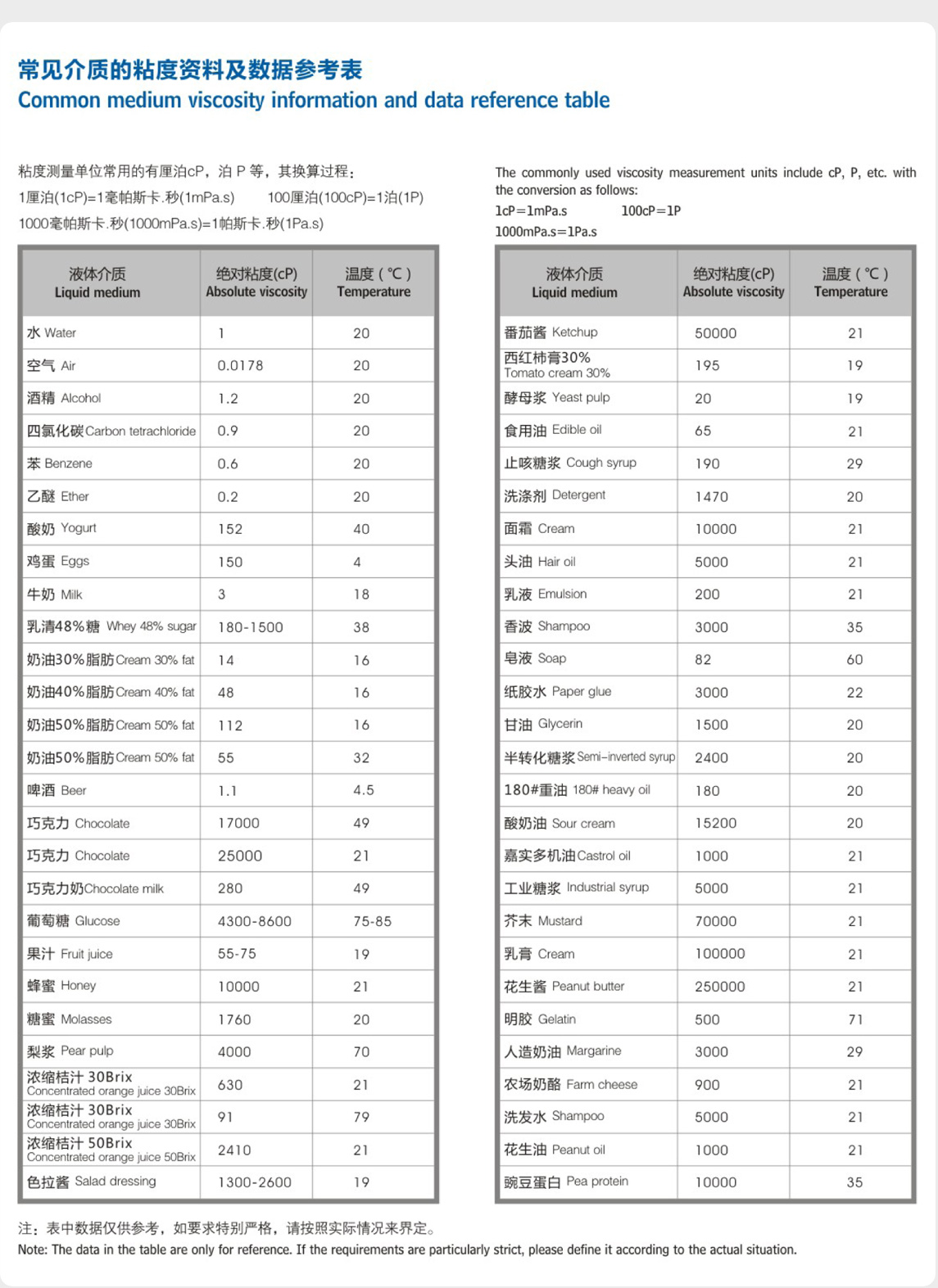 常見介質的粘度資料及數據參考表 返回