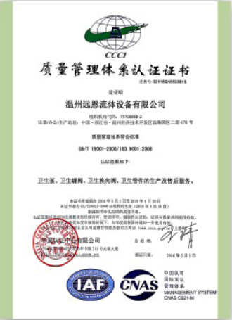 遠恩企業已通過ISO9001:2008質量體系認證和CE認證,完善的質量保證體系,可以保證整個設計、制造過程受到監督和控制。